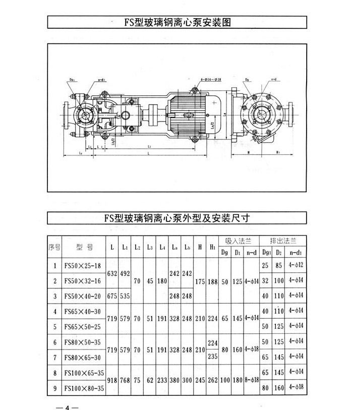 FS型臥式玻璃鋼離心泵