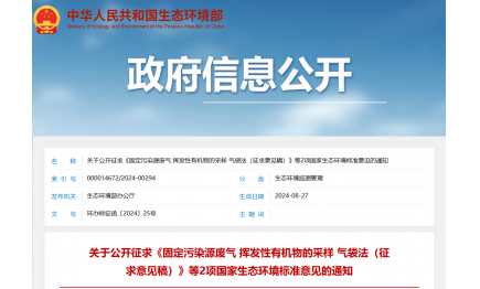 生態(tài)環(huán)境部發(fā)布2項國家生態(tài)環(huán)境標準征求意見稿2024-08-29 -