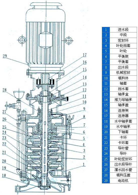 立式多級管道泵是我公司根據(jù)我國對高層建筑給排水及從臥式多級離心泵基礎(chǔ)上進行優(yōu)化設(shè)計和制造的,該型泵由于采用了高效節(jié)能的優(yōu)秀水力模型,因此具有效率高,性能范圍廣等優(yōu)點,更好地滿足了用戶的使用要求.另外,本型泵在結(jié)構(gòu)上采用了立式、分段形式,且運轉(zhuǎn)安全、平穩(wěn)、壽命長、占地面積小、安全維修方便。