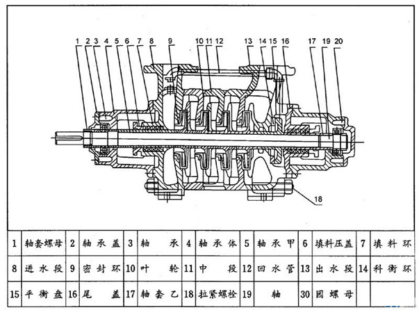 G型水泵為多級分段式,其吸入口位于進(jìn)水段上,吐出口在出水段上均垂直向上,其揚(yáng)程機(jī)根據(jù)使用而增減水泵級數(shù)。水泵裝配良好瑟否,對性能影響關(guān)系很大,萬其是各個(gè)葉輪的出口與導(dǎo)葉進(jìn)口之寧肯對位置,每級葉輪的吐出口中心必須對準(zhǔn)導(dǎo)葉的中心,其中稍有偏差即將使水段上均直向上,其揚(yáng)程可根據(jù)使用而增減水泵級數(shù)。水泵裝配良好與否,對性能影響關(guān)系很大,尤其是各個(gè)葉輪的出口與導(dǎo)葉進(jìn)口之相對位置,每級葉輪的吐出口中心必須對準(zhǔn)導(dǎo)葉的中心,其中稍有偏差即將使水泵的流量減少,揚(yáng)程降低,效率差,故在檢修裝配時(shí)務(wù)必注意,若有偏差必須調(diào)整。