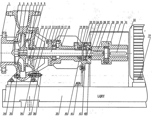 LQRY系列導(dǎo)熱油泵是吸取了國內(nèi)外各類先進(jìn)的熱油循環(huán)泵的特點(diǎn)研制的,在我國載熱體加熱系統(tǒng)中行到廣泛的使用,具有結(jié)構(gòu)合理、技術(shù)先進(jìn)、效率高、在熱態(tài)下能長期穩(wěn)定運(yùn)轉(zhuǎn)無泄漏、無附加冷卻系統(tǒng)安全可靠等特點(diǎn),已經(jīng)進(jìn)入石油、化工、橡膠、塑料、制藥、編織印染、筑路、食品等各個(gè)工業(yè)領(lǐng)域,主要用于輸送不含固體顆粒的弱腐蝕性高溫液體,使用溫度≤350oC,是一種理想的熱油循環(huán)泵。
